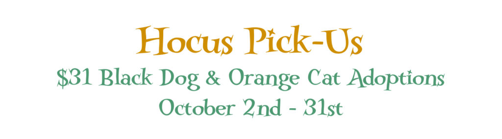 Whether you’re a fan of tricks or treats during spooky season, a four-legged addition to the family is sure to make this Howl-oween a whole lot sweeter! Grab your brooms and fly on in to the shelter from October 14th through the 31st to adopt a pet for just $31 (exclusions apply).